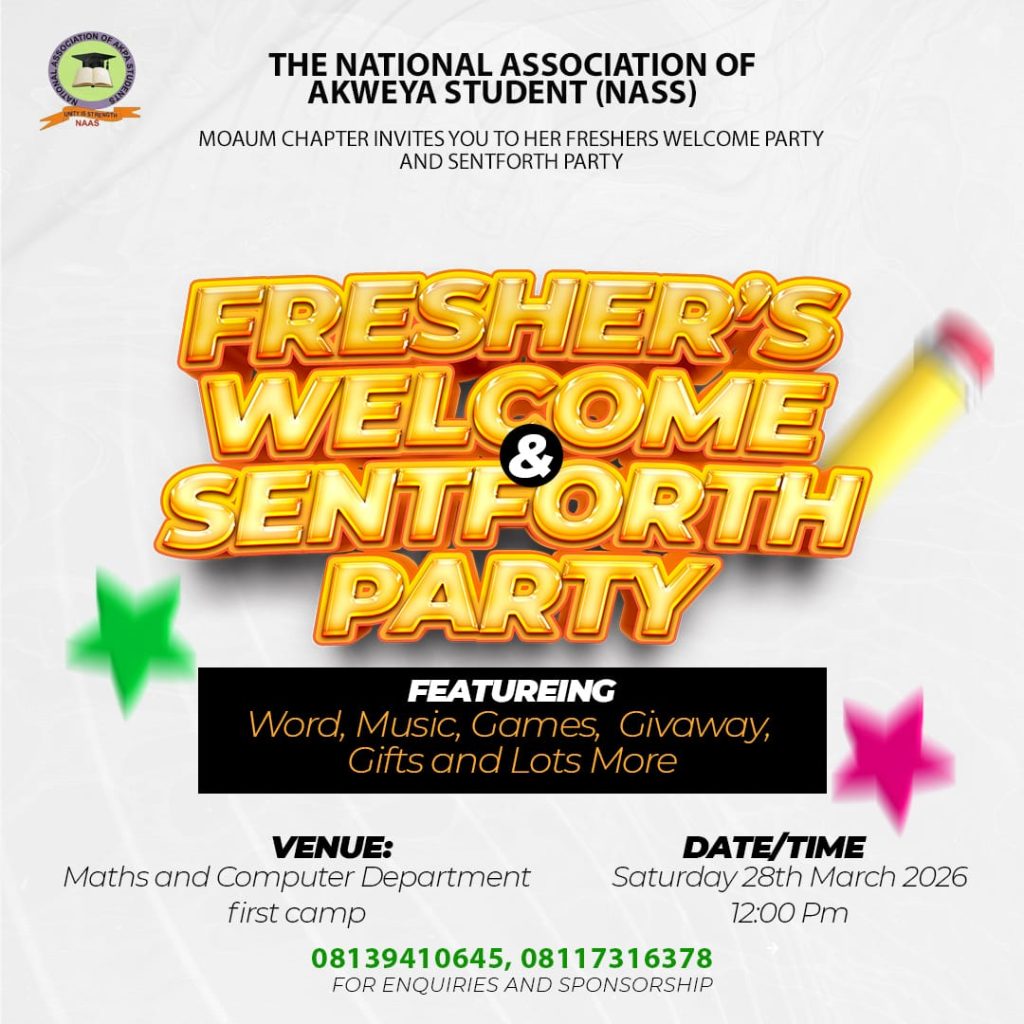 The National Association of Akweya Students (NAAS), Moses Orshio Adasu University, Makurdi (MKD) Chapter, on Saturday, March 28, 2026, held its Fresher’s Welcome and Send-Forth Party at the Mathematics and Computer Science Department, bringing together new and returning students in a vibrant celebration of community, learning, and mentorship.