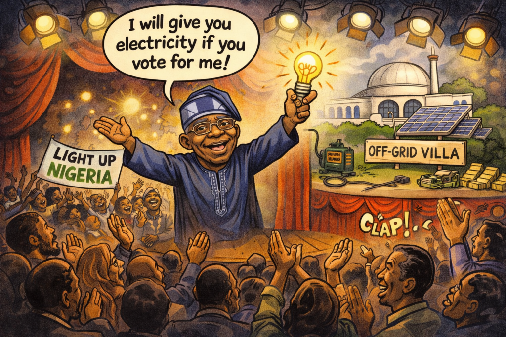 If Nigeria were a reality show being scripted by international award-winning experts, the president, yes, Bola Ahmed Tinubu himself, would deliver a campaign speech so compelling it earns a standing ovation and a sequel. “Give me your votes,” he would say, “and I will give you electricity. If I don’t, don’t reelect me.”
